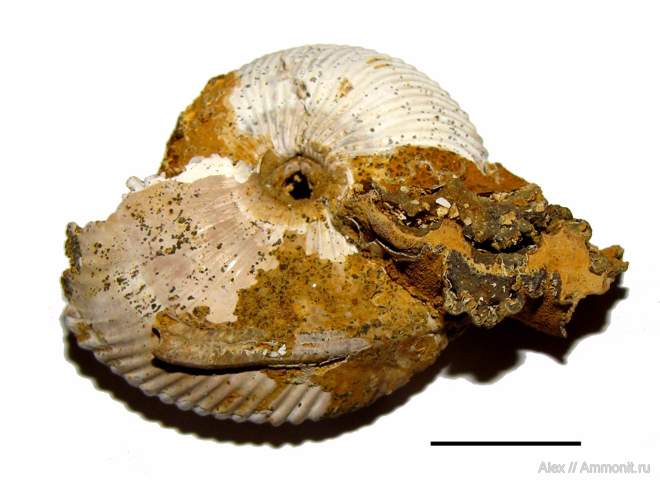 Чуть не забыл - аммонит небольшой, длина масштабного отрезка 1 см.