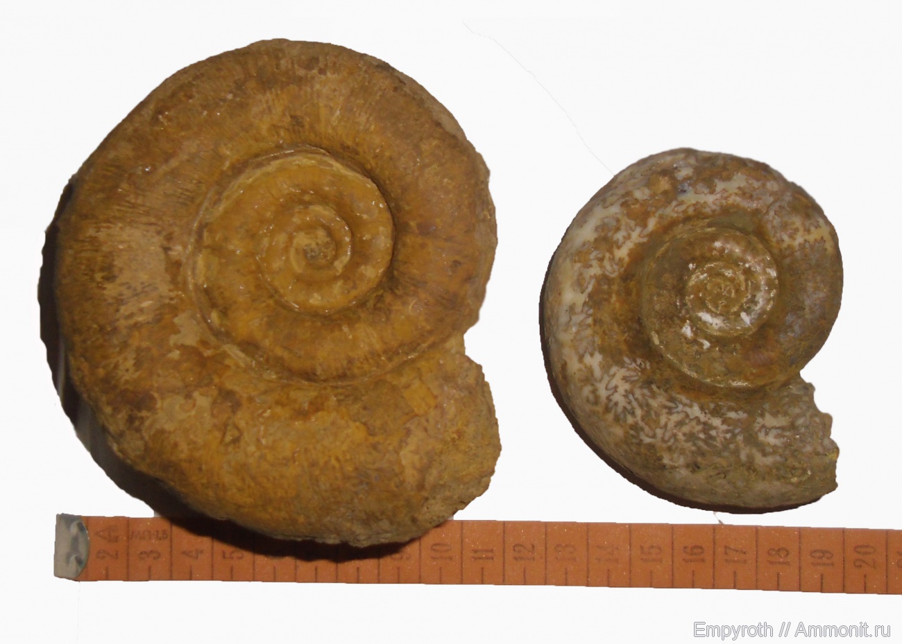 Интересный аммонитик справа, замещенный белым кальцитом. Такое редко там бывает. | ||||||