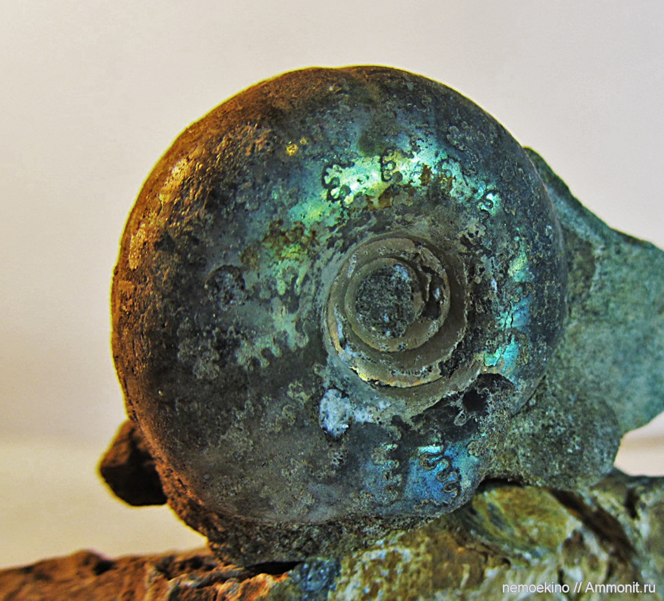Красивый малыш!Эффектный зеленый аммонит! | ||||||