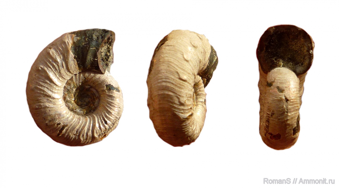 Небольшой,размером 12мм, аммонит.Имеет два ряда небольших бугорков на вентральной стороне.Предположительно малек Mirosphinctes.