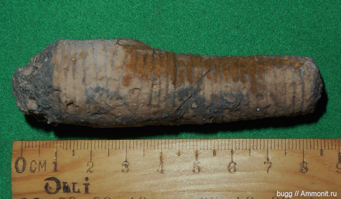 Крупный франмент стебля морской лилии Apiocrinus с деформацией.Диаметр в месте утолщения 2,2 см.