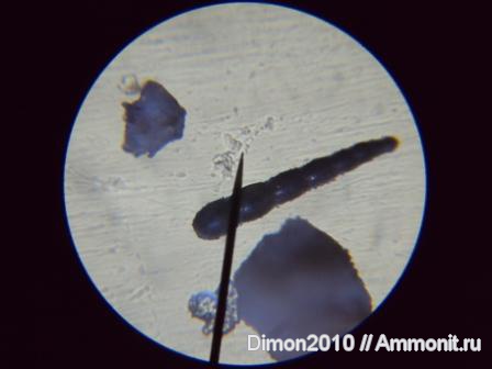 предположительно Dentalina, качество снимка не позволяет утверджать, так как есть сходные фораминиферы из других групп, а деталей не видно | ||||||