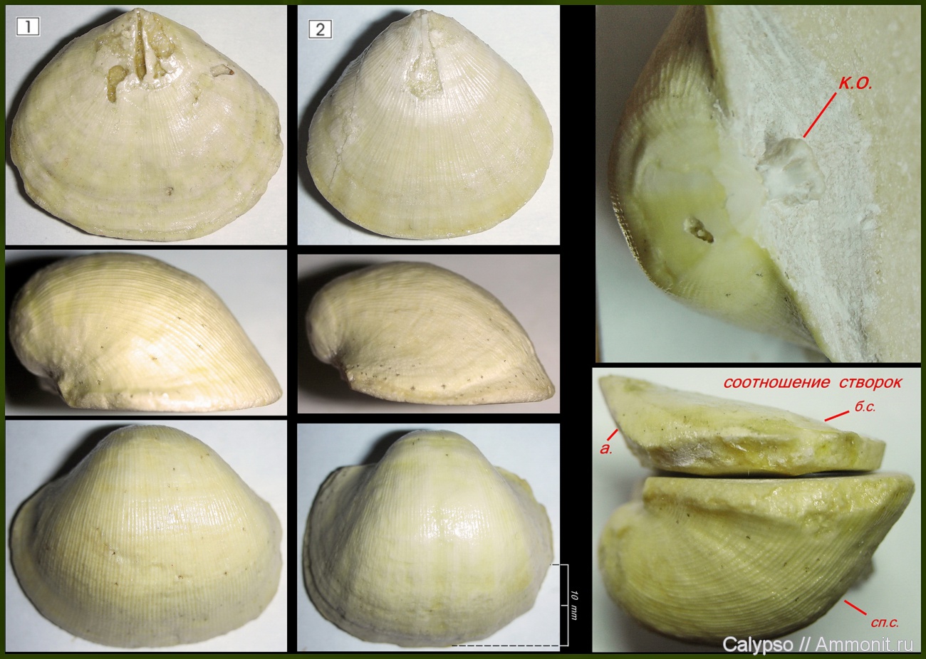 Описание и "подгонка" створок по соотношению осуществлялась согласно схеме, изображённой на стр. 57 (рис.70) по монографии А.Н. Сокольской и Т.Г. Сарычевой - "Определитель палеозойских брахиопод Подмосковной котловины."