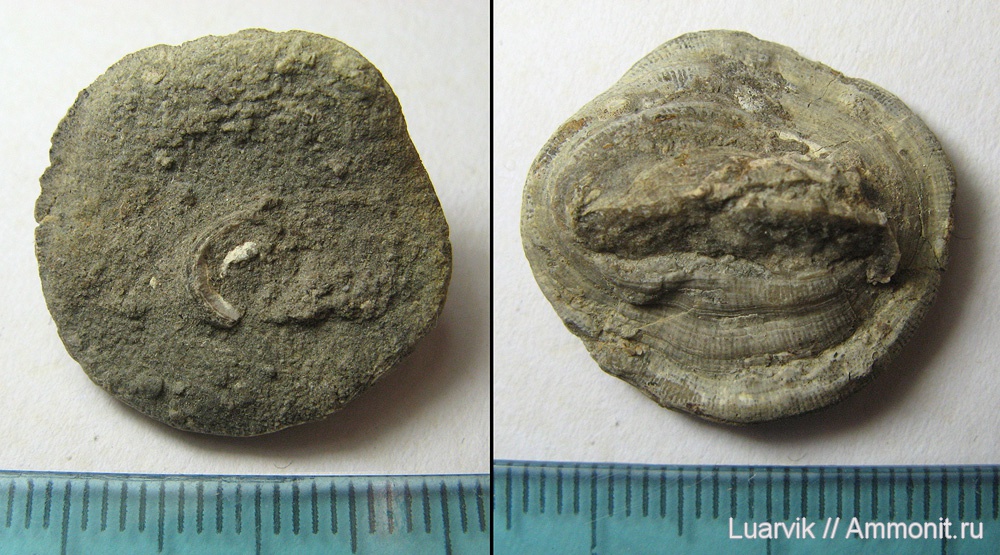 Одиночный коралл. Юра, оксфорд. Верхняя поверхность, по-видимому, покрыта известковым илом, зато нижняя отпрепарировалась идеально.