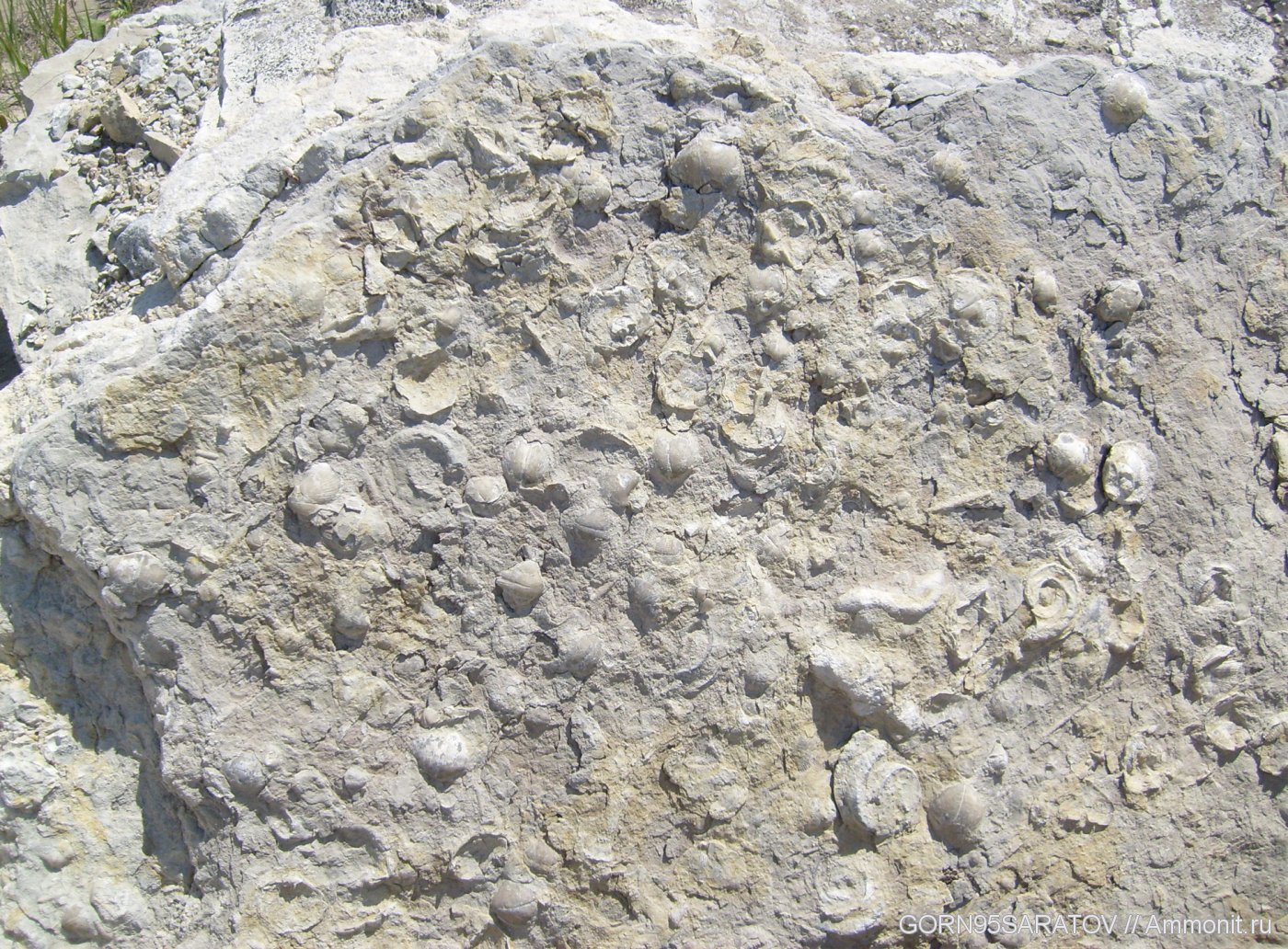 На данной фотографии запечатлён фрагмент пород Тёпловского карьера(Саратовской области)в котором присутствуют брахиоподы(помоему продуктусы) и беллерофоны.Вообще в этом карьере попадаются криноидеи(фрагменты)целые и обломанные иглы морских ежей,множество брахиопод,кораллов и белерофонов.