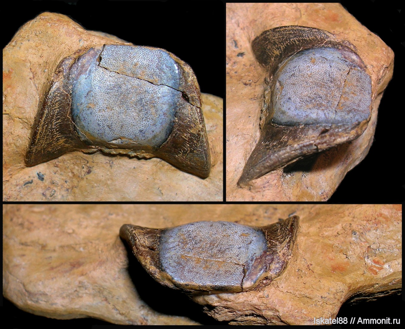 Предположительно первый зуб в симфизе. Поскольку отпечатков этих рыб найдено не было, можно лишь строить догадки. | ||||||