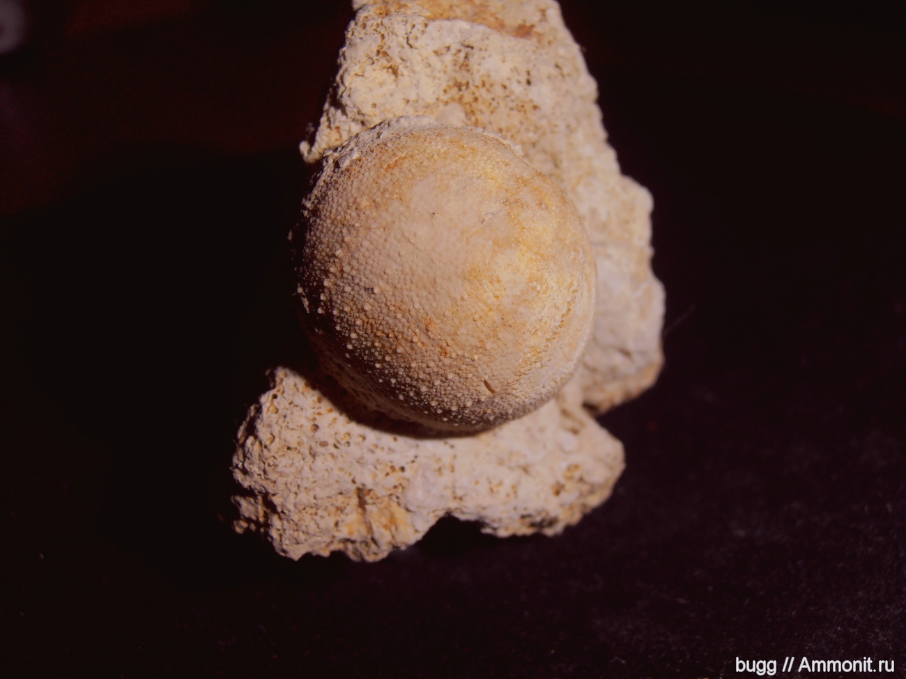 Морской еж Spaniocyphus sp.Размером 2,2 см из нижнемеловых отложений Симферполя.Не беря во внимание пару фрагментов найдено было два таких ежа.К сожалению при расчистке один образец был утерян(очень тонкий панцирь), поэтому данный экземпляр решили оставить в породе.