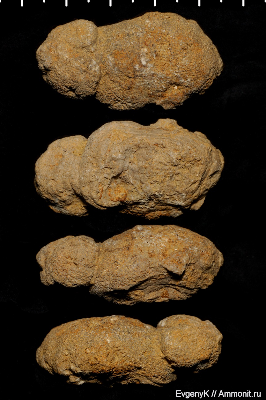 На мои взгляд губки такои формы определять тяжело. я бы подумал,что это кусок породы. Попадались мне на насыпях вскрыши карьера непонятные образования в форме нескольких выпуклостей овальнои формы. Может это губки палеогена? Уж очень они твердые и вроде как без очевиднои текстуры. Надо будет парочку прихватить,да сфоткать... Но это только веснои( | ||||||
