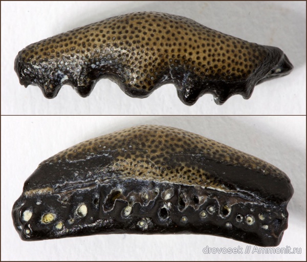 Впервые попавшийся зуб. Возможно Arpagodus rectangulus Trautschold, 1879. Длина - 10мм.
