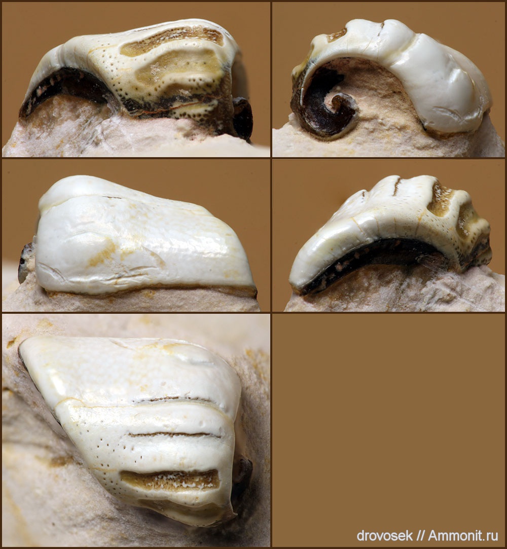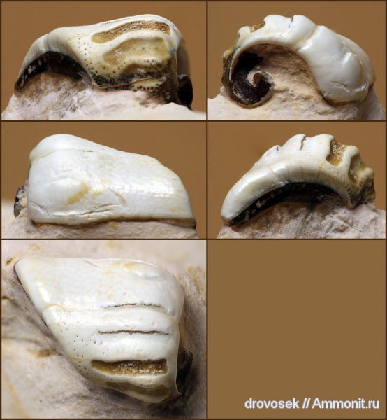Один из красивейших зубов на сайте. Интересно,почему развилась такая спиральная форма?Наверное для более надёжного крепления в челюсти? | ||||||