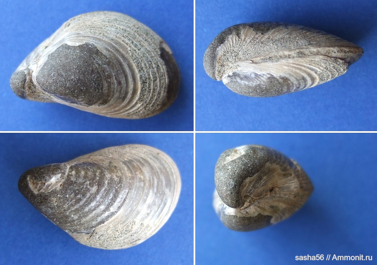 Хорошо она окаменела - часть стерта, а на части даже раковина сохранилась. И по-моему на большей створке около "клюва" видна какая-то аномалия развития раковины (на нижних снимках заметно). | ||||||