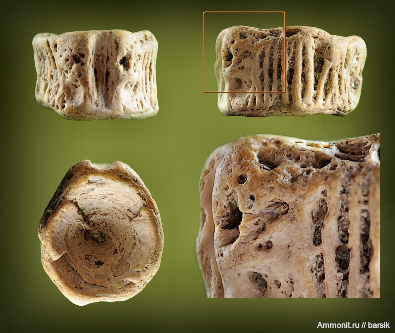 При увеличении это оказалась сложная конструкция с пазами, отростками, каналами, углублениями и т.д. Посмотрел по тэгам «позвонки» - больше конечно монолитных дисков, но иногда встречаются и такие с волокнистой боковой поверхностью. У меня вопрос к специалистам – это результат выветривания или позвонок действительно имеет такую трубчатую структуру?