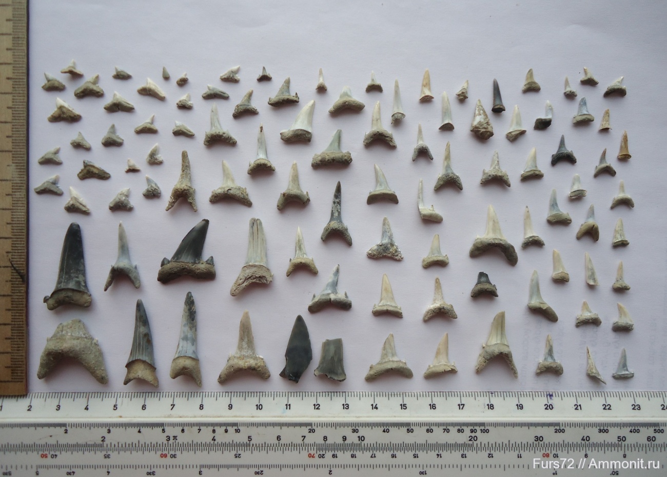Зубы акул. Сборы 2012 года с Итальянского карьера близ Тюмени. Возраст - эоцен (приабон).