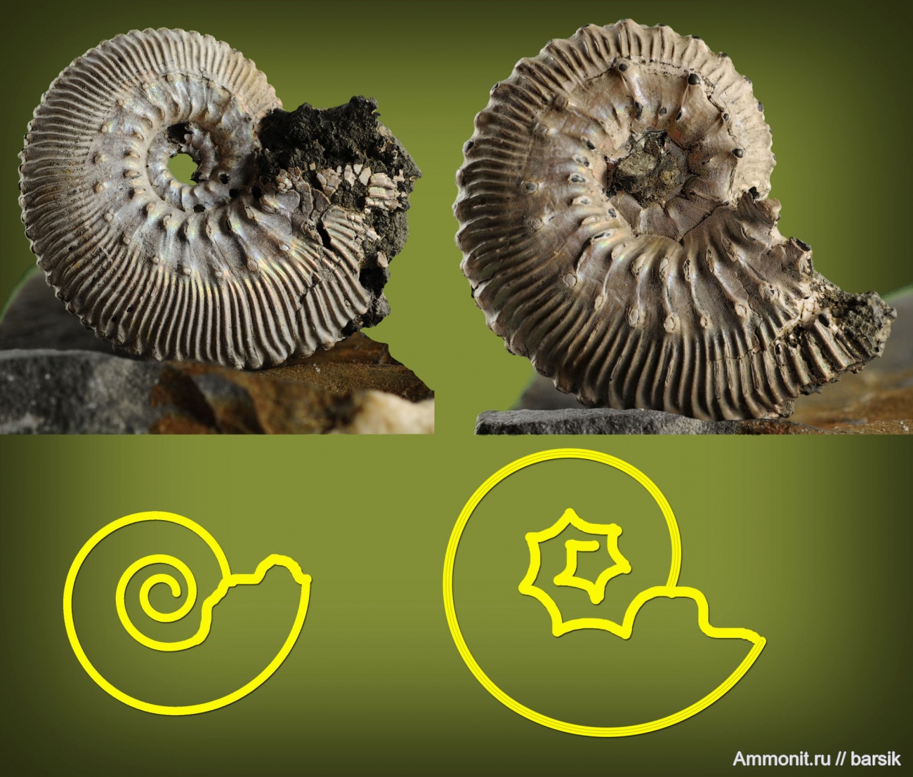 Космоцерасы - вообще очень кривые аммониты. На ранних оборотах у них такое не редкость | ||||||
