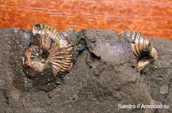 Глиняный Amoeboceras и двустворка Trautscholdia cordata в породе.