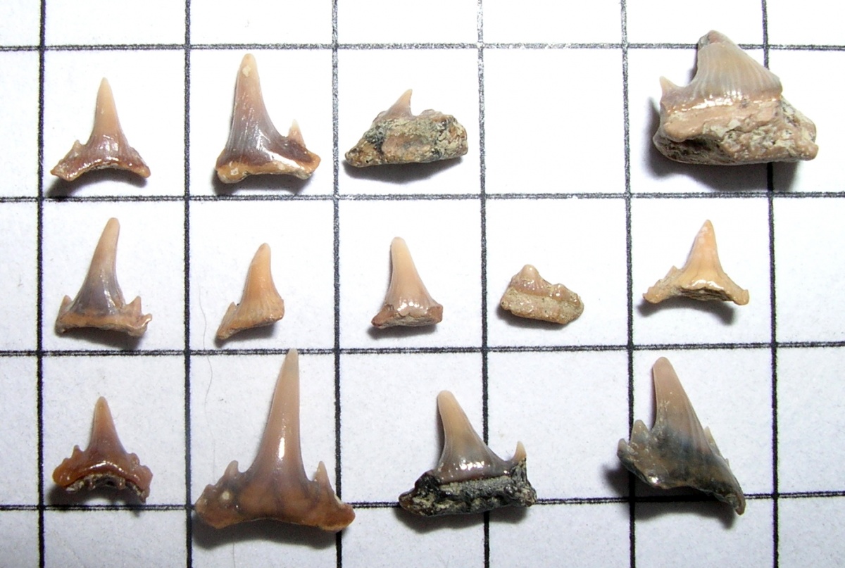 Вот фото По мне, так только один обломок похож на этот зуб: №4 во 2-м ряду. | ||||||
