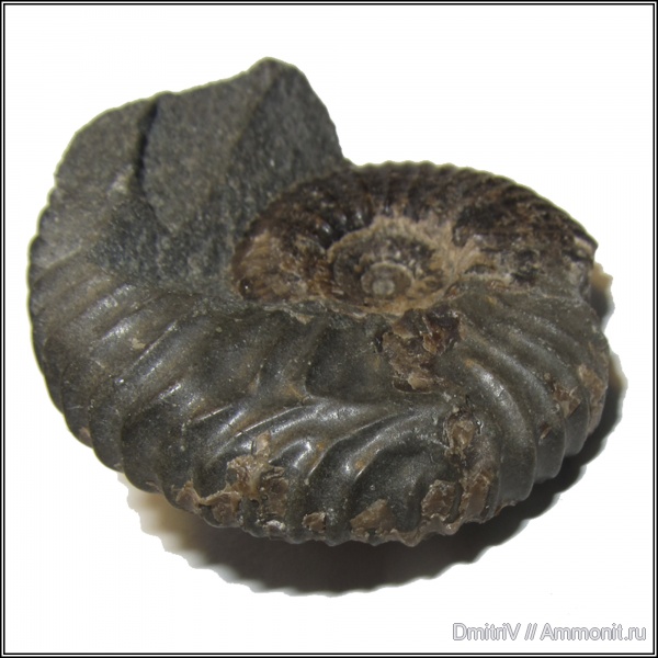 Замечательный аммонит. Такое впечатление, что им кто-то хотел перекусить. Или это - неправильное развитие? | ||||||