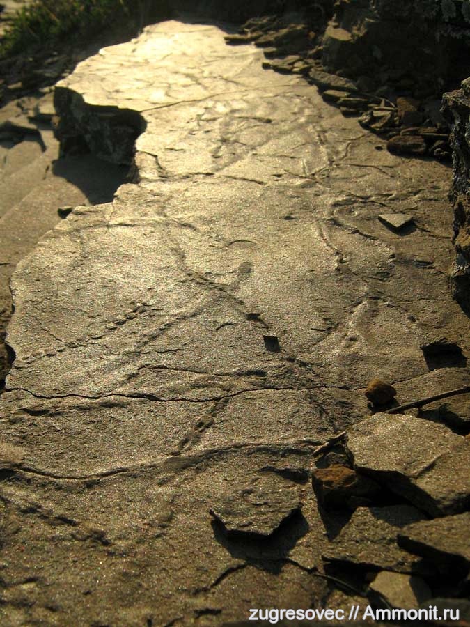Вообще же похоже на ихнотекстуру.. Допустим, биотурбация или чей-то след рытья (burrow). | ||||||