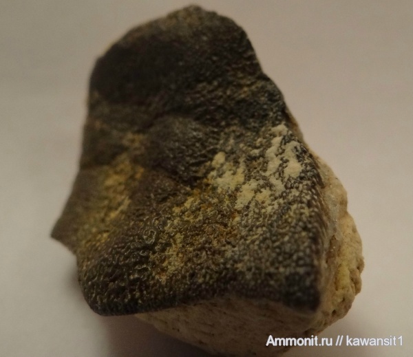 Это точно не Chaetetes. У хететеса сверху равномерные дырочки, а тут довольно сложный узор (на левом верхнем фото лучше видно). Оно на породе, но это точно какая-то рыбья деталь. | ||||||