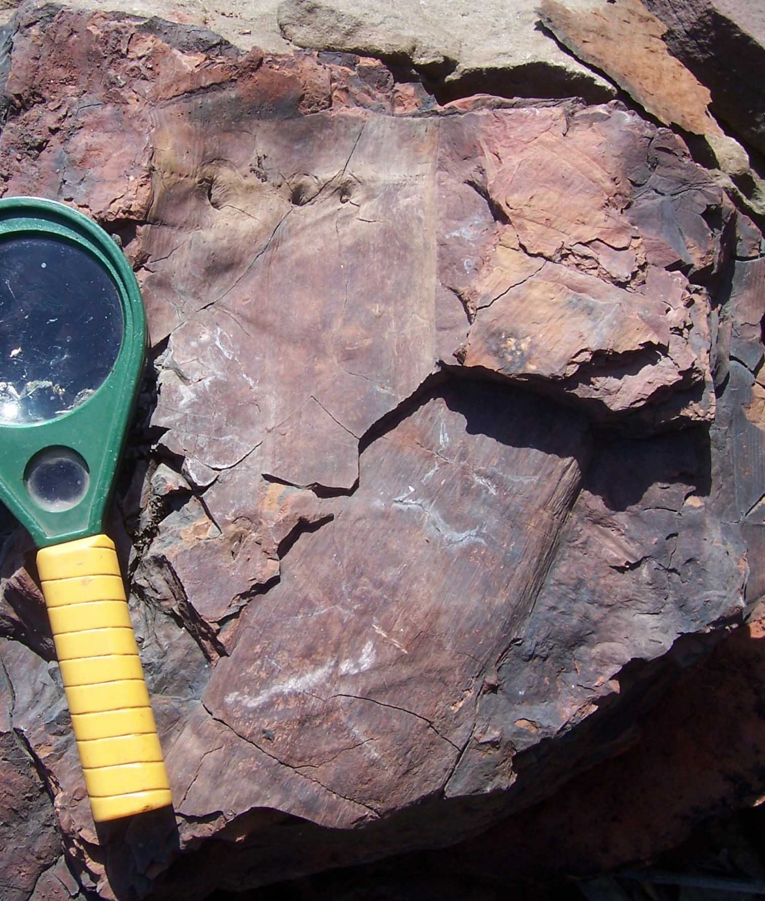 Верхний слой вот здесь, тоже кстати, гладкий, это зависит от состояния поверхности при фоссилизации, может быть сильно "свезено", как бы заглажено. В данном случае, у меня ощущение, что это как бы вид "изнутри", веточные рубцы вроде вдавлены в тело ствола, поэтому вполне может быть компрессией внутренней отливки каламита. | ||||||