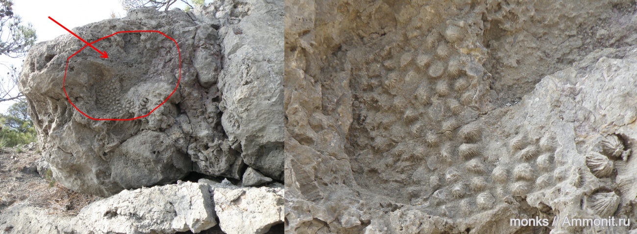 Это крупная глыба, лежащая на краю берегового склона на высоте 3-4 местров. Виден только этот фрагмент, вся остальная часть - массивный мраморовидный известняк. Расколоть камень и извлечь из него этот коралл, нет возможности. Правда в нижней части карролита видна структура. Значит нужно дать еще одно фото с этой структурой? | ||||||