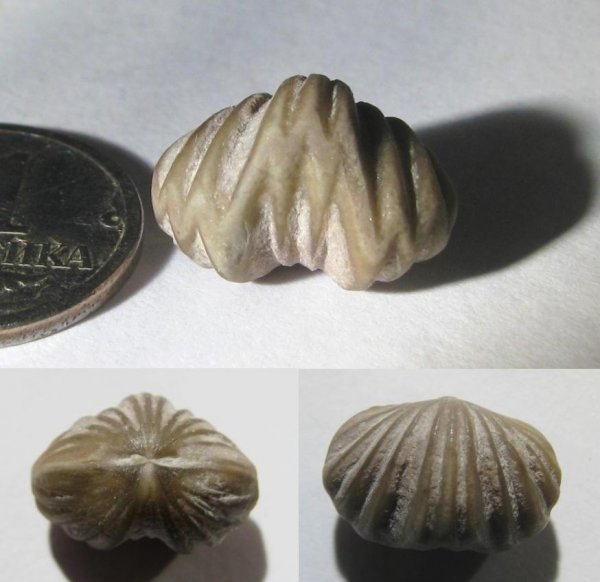 Получается, что эта "зубастая" жизненная форма брахиопод появляется еще в ордовике. Она хоть и не идентична, но похожа на эти образцы: Карбоновая брахиопода и Ivanoviella alemanica. | ||||||