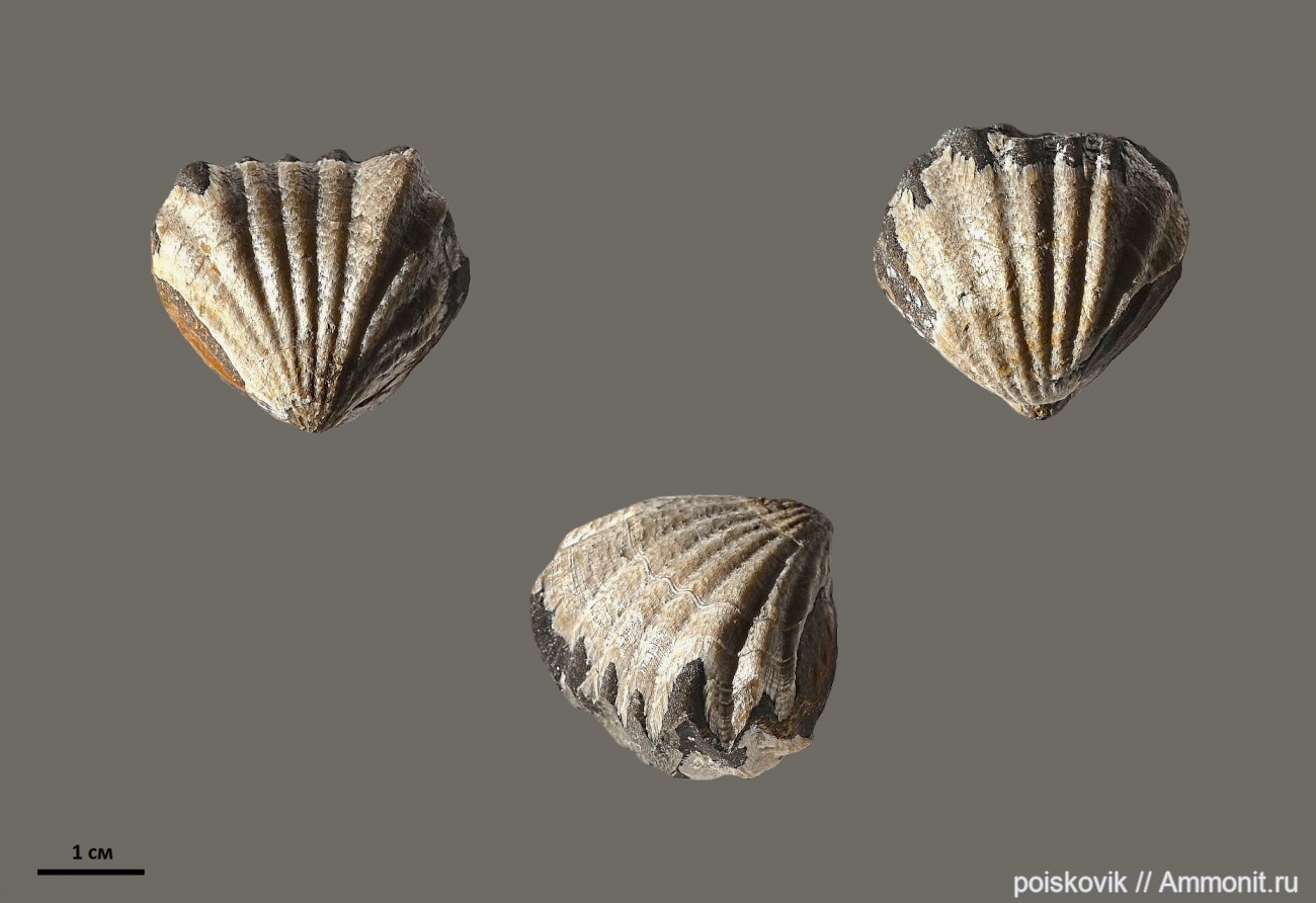 Брахиопода в 3-х проекциях. Размеры: 3см Х 2,8см Х 2см. Подножье горы Алчак в окрестностях Судака.