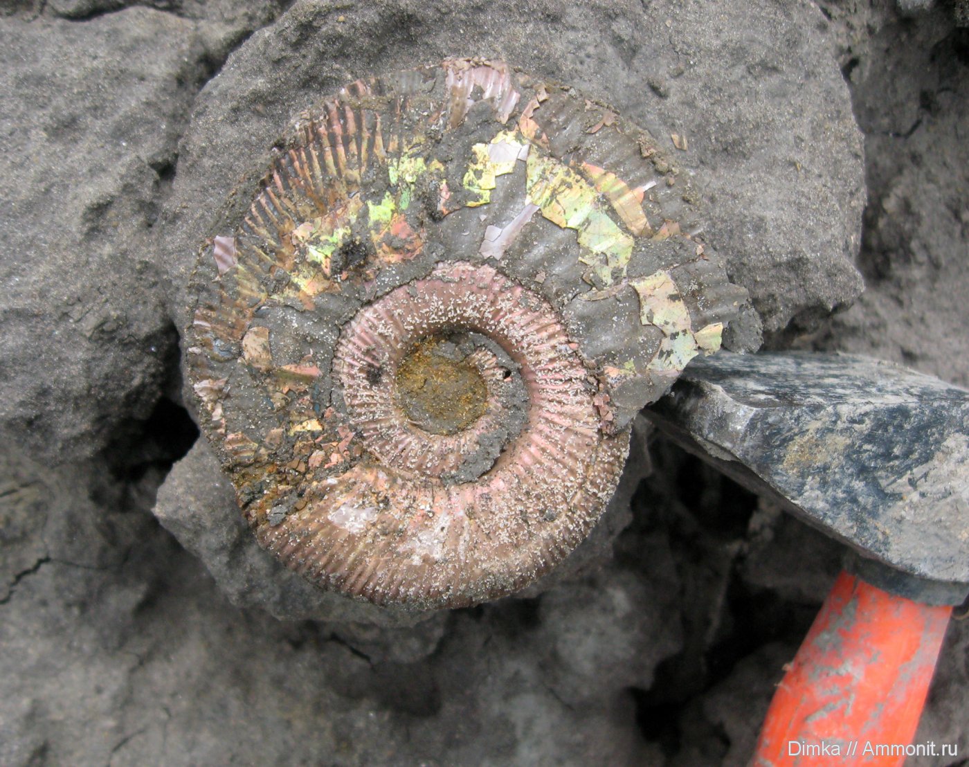 Свеженайденная раковина небольшого Binatisphinctes, обнаруженная в келловейской глине Михайловского карьера.