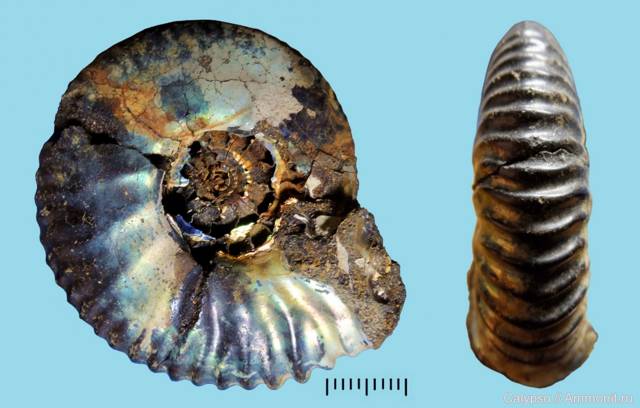 Интересен постепенно нарастающей грубеющей ребристостью в сторону сохранившегося устья. Перед ним аммонит сделал финальный пережим, снова несколько сгладил два ребра и на этом "решил" закончить постройку своей раковины.