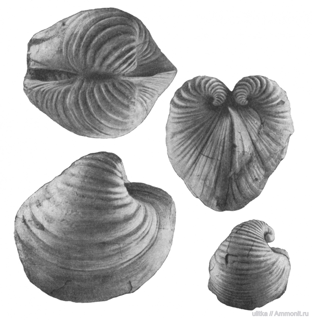 A. eichwaldiana (Romanovsky, 1890), типовой вид рода Aralocardia, три крупных фигуры и A. abichiana (Romanovsky, 1884), меньшая фигура.