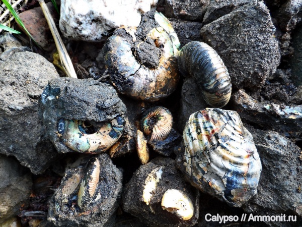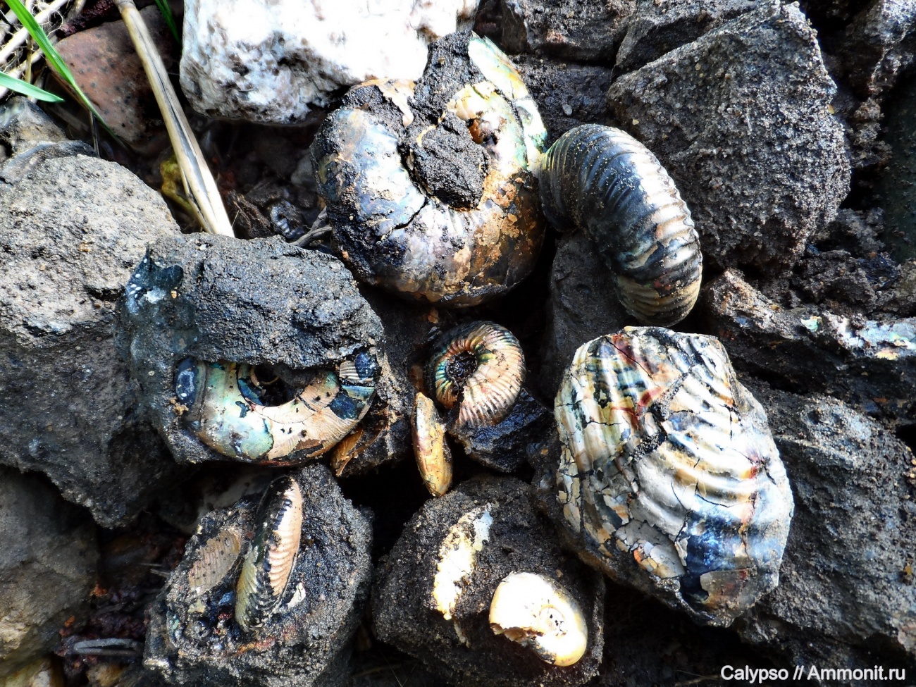 Хорошие сборы! Перламутр двустворки удивительный. А аммониты - тот что слева - Kachpurites cheremkhensis, остальные - различные Craspedites (вблизи небольшой и засвеченный может быть кашпуритом). | ||||||