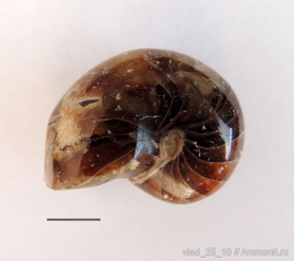 Это наутилус с Мадагаскара, их очень часто продают как сувениры. Обычно их определяют как Cymatoceras, хотя без раковины (это полированное ядро) определение затруднительно. | ||||||