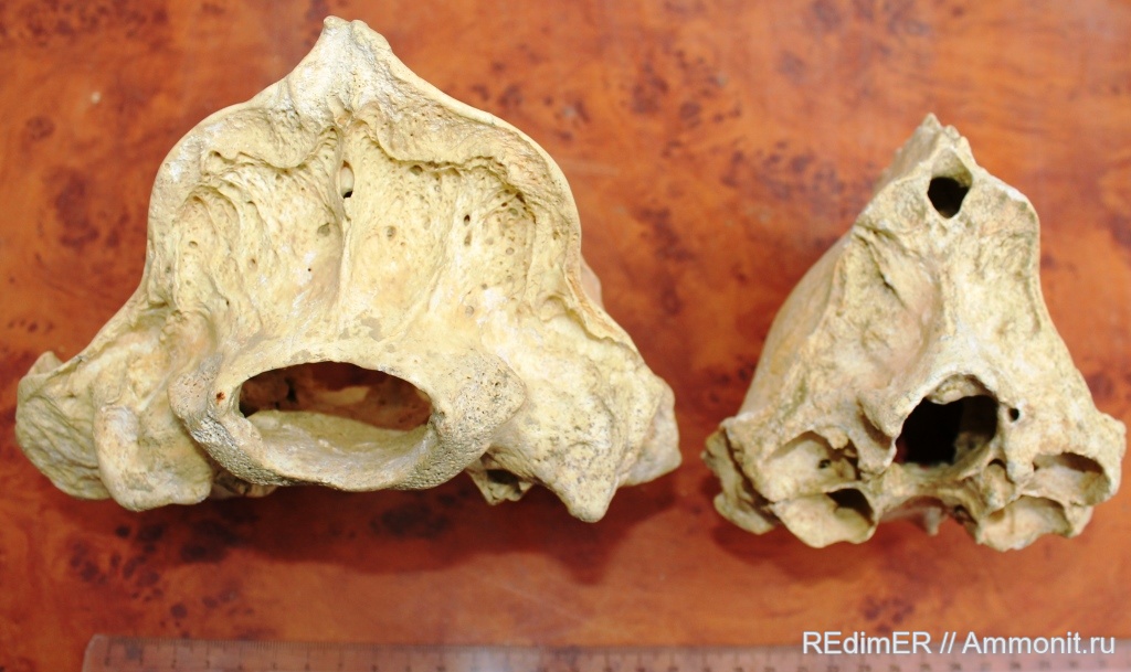 Слева - плейстоценовый медведь Ursus sp., ширина 175мм