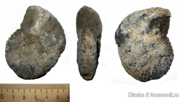 Вентральная сторона на последнем обороте плохо видна, но по мойму совсем гладкая, а на предидущем обороте виден небольшой участок, где он уже не закрыт старшим оборотом, там имеется желобок и ребра не смыкаются и между ними промежуток около 1 мм. | ||||||
