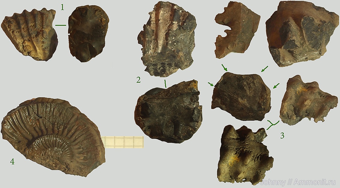 паззл сошелся - при внимательном рассмотрении фрагменты 2 и 3 оказались от одного аммонита. | ||||||