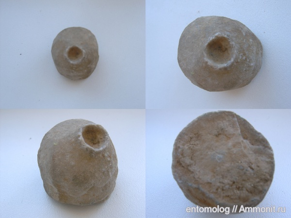это мшанка. видны отверстия отдельных зооидов. Отверстие посередине - то, вокруг чего наросла полусферическая колония, пережимы сбоку - этапы роста колонии | ||||||