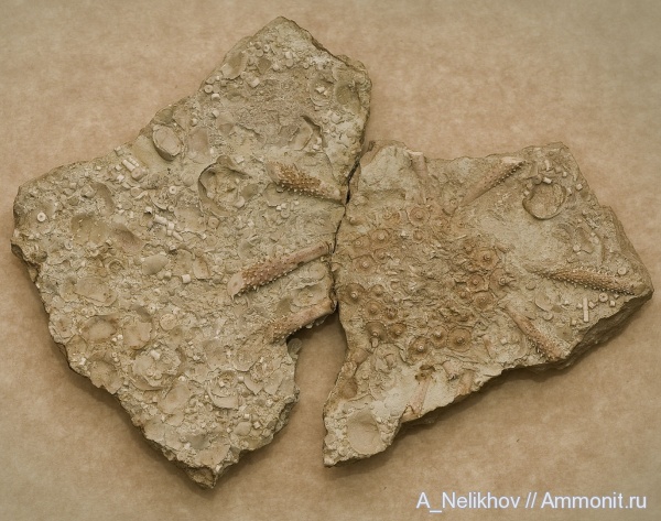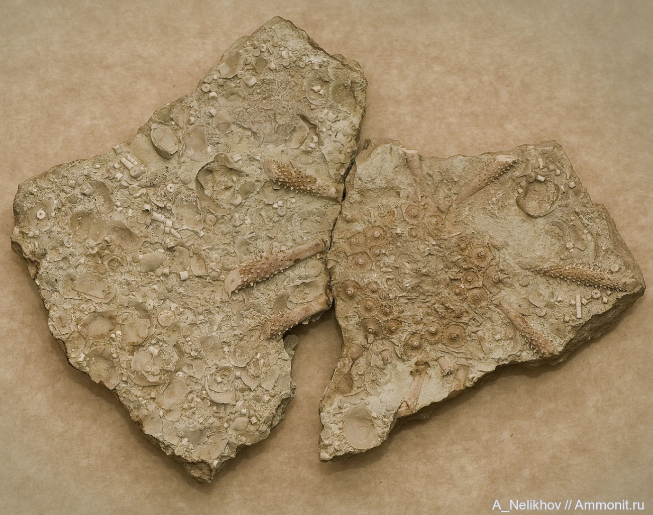 Морской еж из Цемгиганта (около 2009 года находка). Сначала в отвалах попалась большая часть образца, потом, минут через десять - вторая. Был куплен Дедовским музеем истории мироздания. Фотография этого ежа была опубликована зимой 2010 года в National Geographic.
