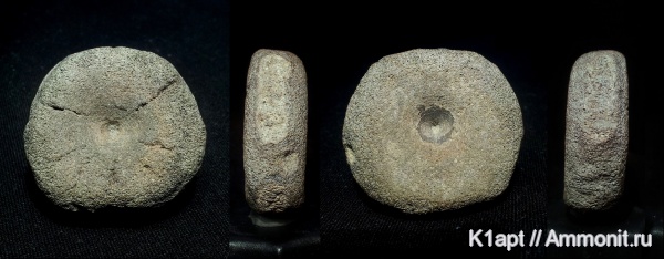 Сильно окатанный позвонок ихтиозавра. Из шейного или хвостового отдела.