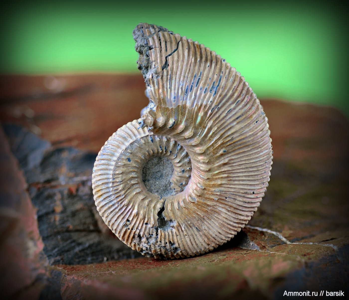 Этот замечательный аммонит подарен мне уважаемым Dimk-ой. Название и стратиграфию честно переписал из прилагаемой этикетки. У нас такого нет, сохранение совершенно другое. Наверное порода захоронения дружит с ископаемым перламутром.