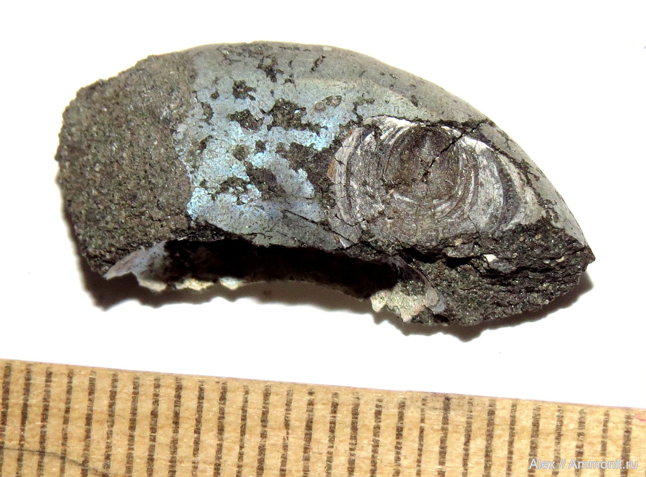 Эту находку, не очень красивую, но любопытную с точки зрения реконструкции юрских экосистем, я размещаю в пару к фото Двустворка в двустворке. На той фотографии представлена двустворка, приросшая изнутри к створке более крупной раковины. Здесь такая же створка (только меньшего размера) приросла изнутри к фрагменту жилой камеры аммонита kachpurites fulgens.