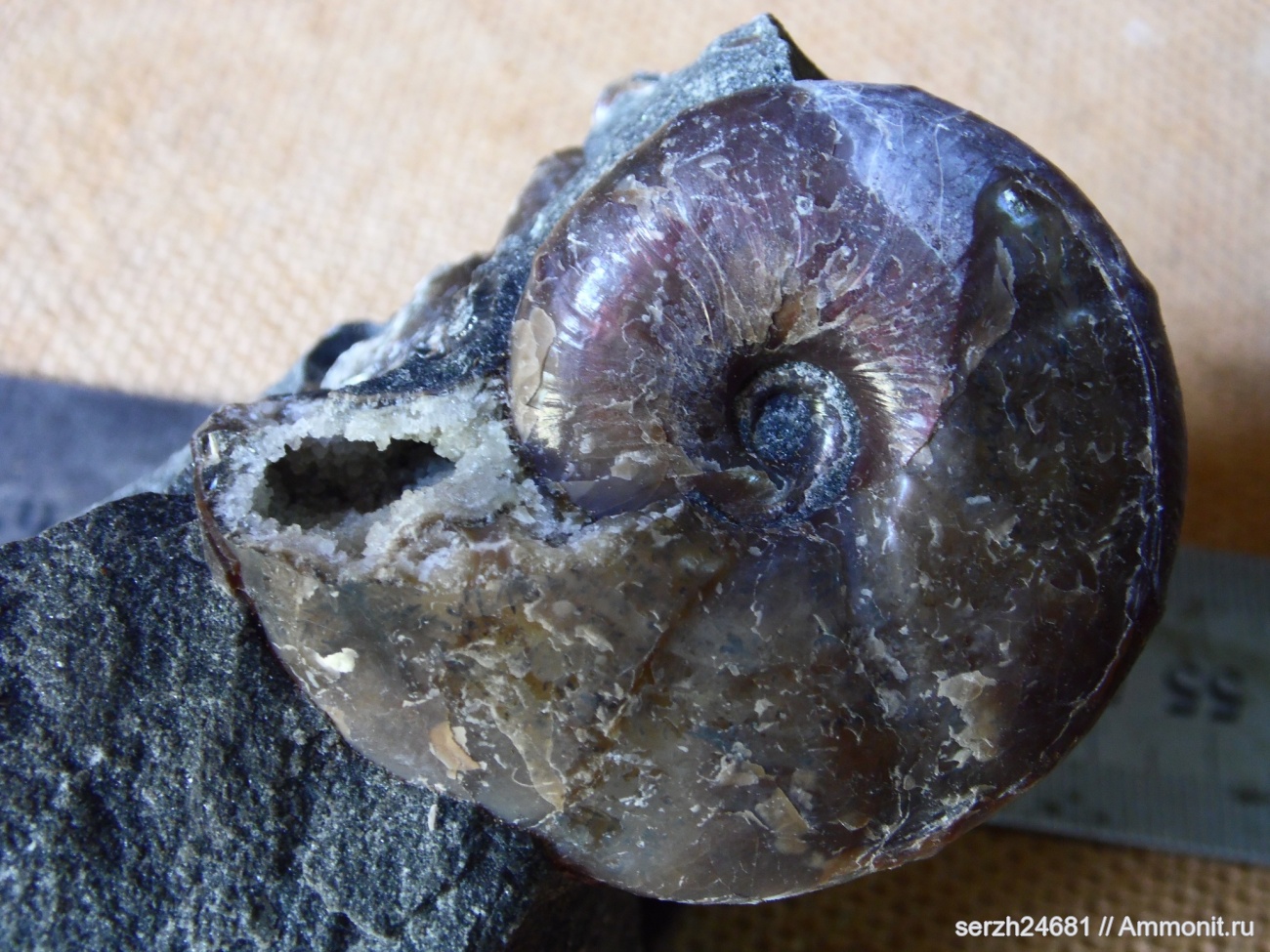 Все-таки небрежное отношение к описанию портит впечатление даже от замечательных образцов. Не "кисталлы" там у него, а кРисталлы. А термина "внутренние межлопастные линии" в палеонтологии нет, есть перегородки (септы), которые разделяют раковину на отдельные камеры и есть лопастные линии, это узор образованный краями перегородок, крепление края перегородки к стенке раковины. | ||||||