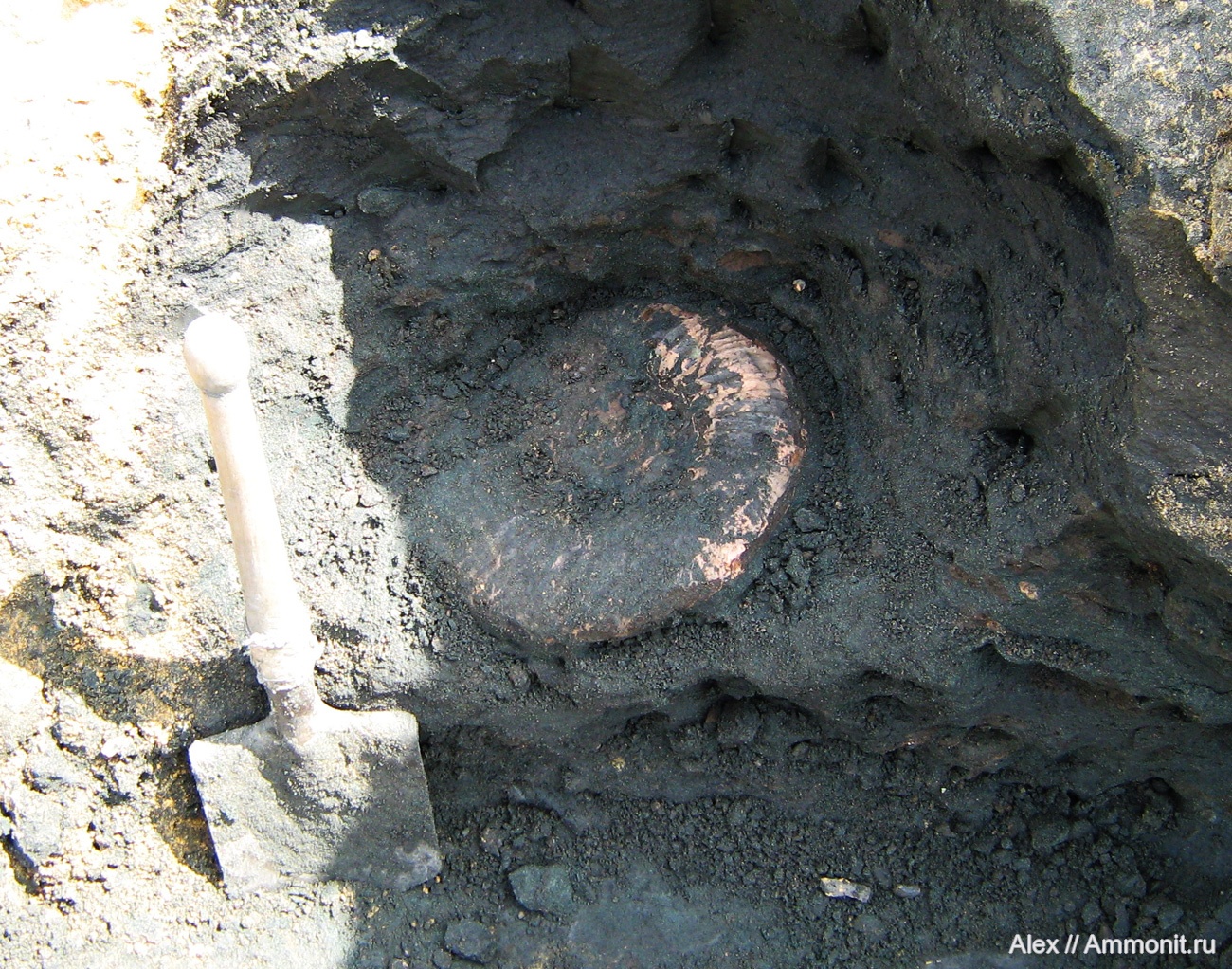 Жаль, что не удалось извлечь. Крупный аммонит. А на фото, помоему даже перламутр сохранился. | ||||||