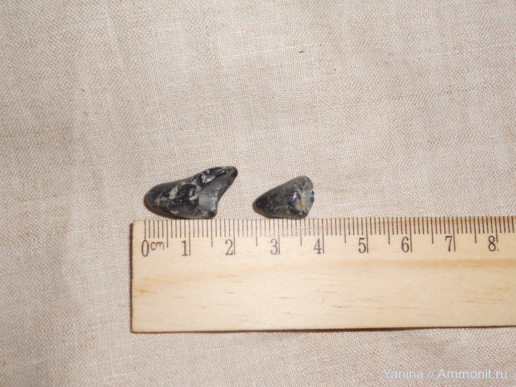 Справа - зуб крокодила, слева - сложно что то сказать, сильно окатан. | ||||||