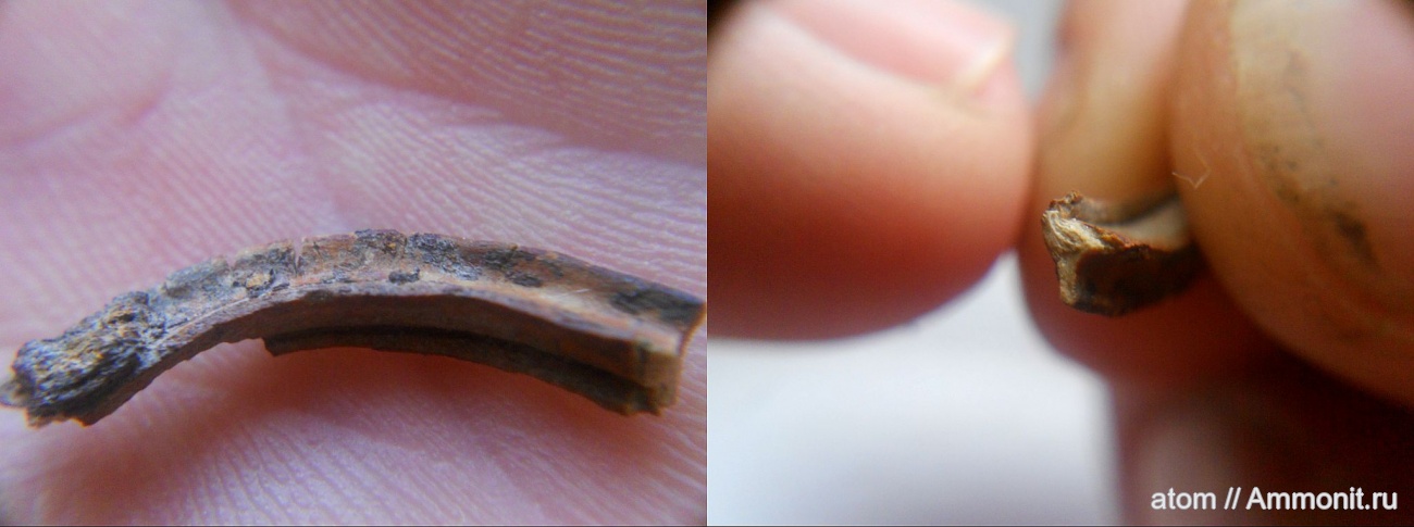 Отверстия невидно поскольку это осколок и разлом произошёл вдоль хода червя, в общем это только одна стенка серпулы))). | ||||||
