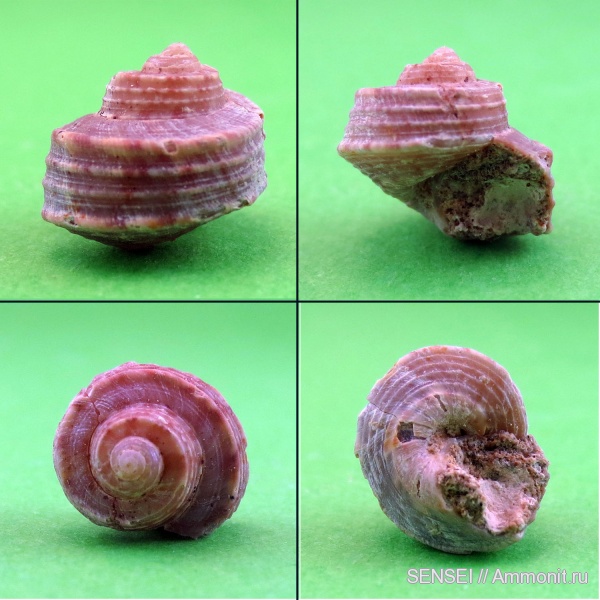 Сегодня извлёк очень фактурную раковину семейства Troсhidae. Из более чем 60-ти,описаных Колесниковым,видов трохусов,ни один не подошёл под эту раковину. Наиболее близок-Trochus sarmates Eichw.var.n.var. Буду очень признателен ув.ulitka,если он прокомментирует фото. Высота раковины-9,5мм., ширина-10,5мм.