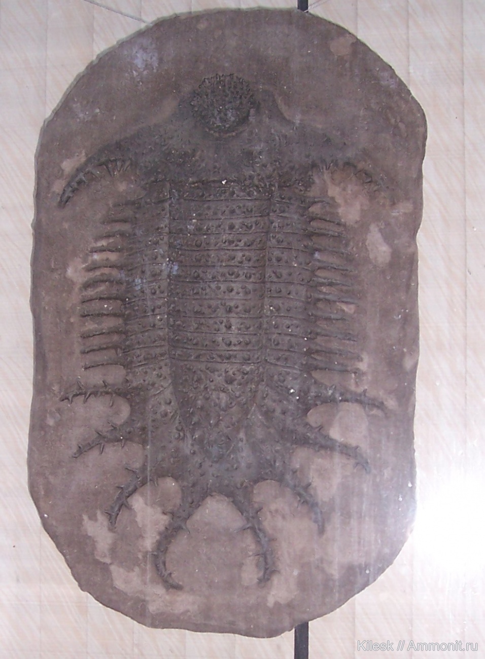 Это даже не совсем слепок - это искусственная реконструкция, сделанная уже лет 20-30 назад. Реконструкция сделана в Музее Пибоди, в Йеле. Сам трилобит Terataspis grandis известен только по отдельным скелетным элементам, так что истинный размер неизвестен, хотя он, конечно был большим трилобитом. | ||||||