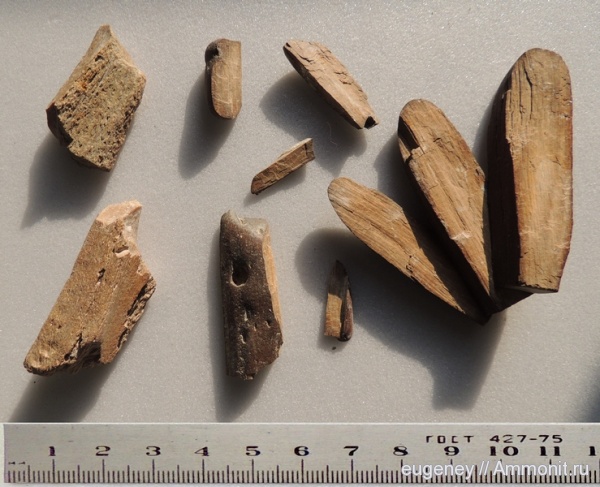 Дерево (фосфоритизированное) здесь только справа и в центре, слева скорее что-то другое, может кости. | ||||||
