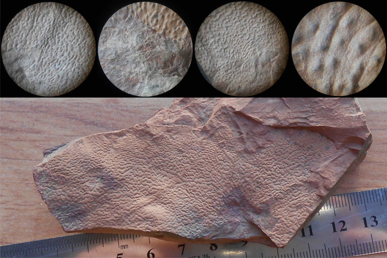 Да нет, это всётаки растительного происхождения отпечаток, в окошках детализации видны морщинки, для хитина крупного чоенистоногого это не возможно, кожа земноводного тоже маловероятно, а вот лагеностомовые имевшие покрытые ворсинками ( бугорки основания ворсинок ) ползучие стебли как раз подходят. | ||||||