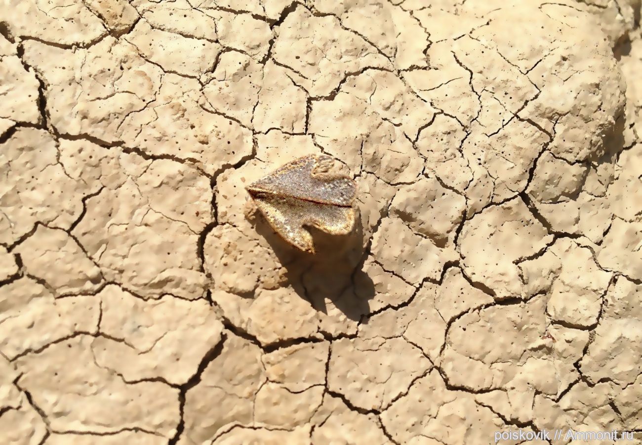 После хороших дождей в высохших лужах Верхоречья буквально "вырастают" мелкие окаменелости. В частности - ринхолит длиной 1см.