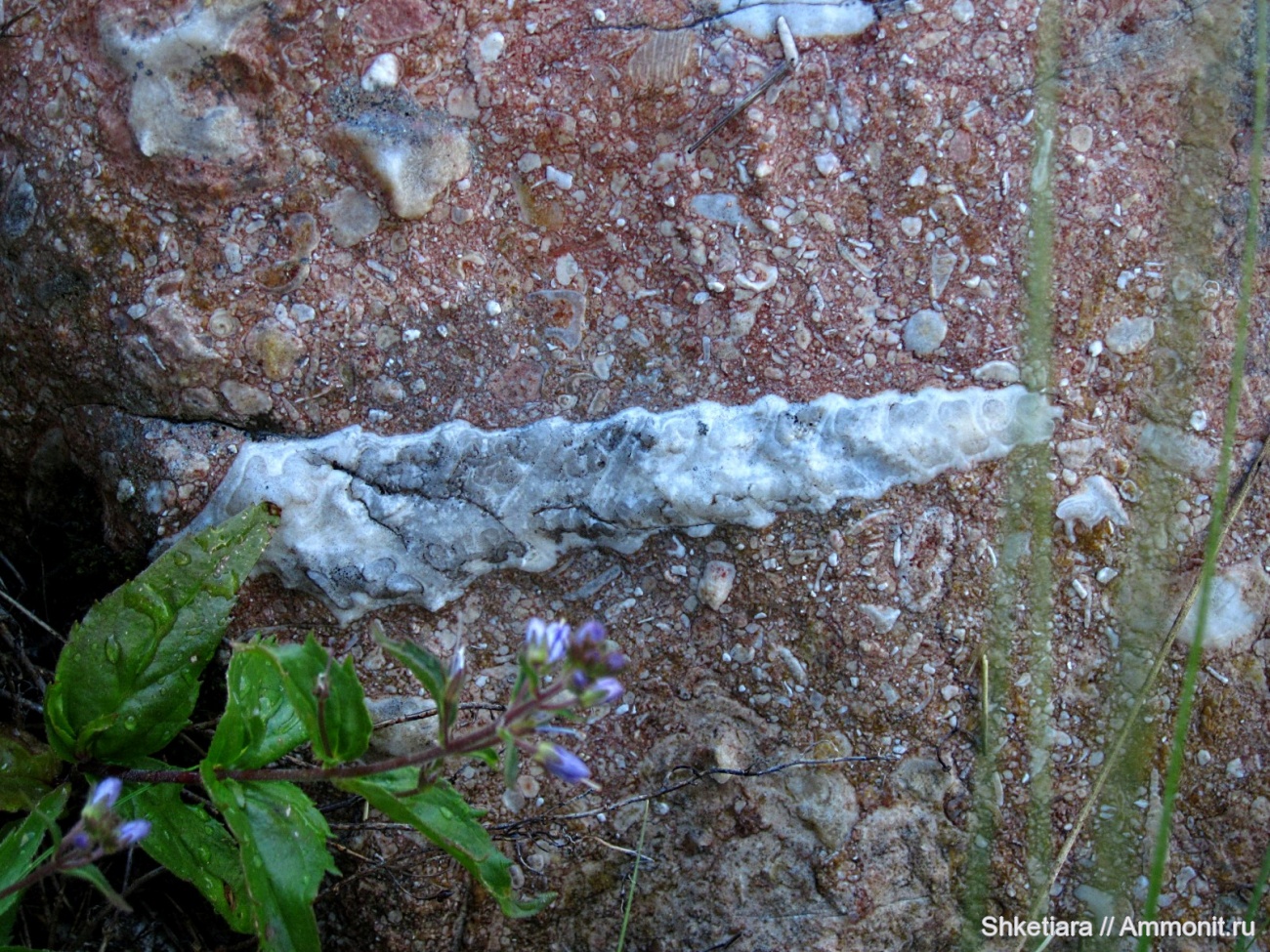 Еще одна довольно загадочная для меня гастропода в титонских скалах Северного плато Фишта. По форме оборотов на срезе вроде напоминает Ptygmatis, но раковина для этого рода выглядит слишком вытянутой, а швы на внешней поверхности слишком выступающими. Длина около 8 см.